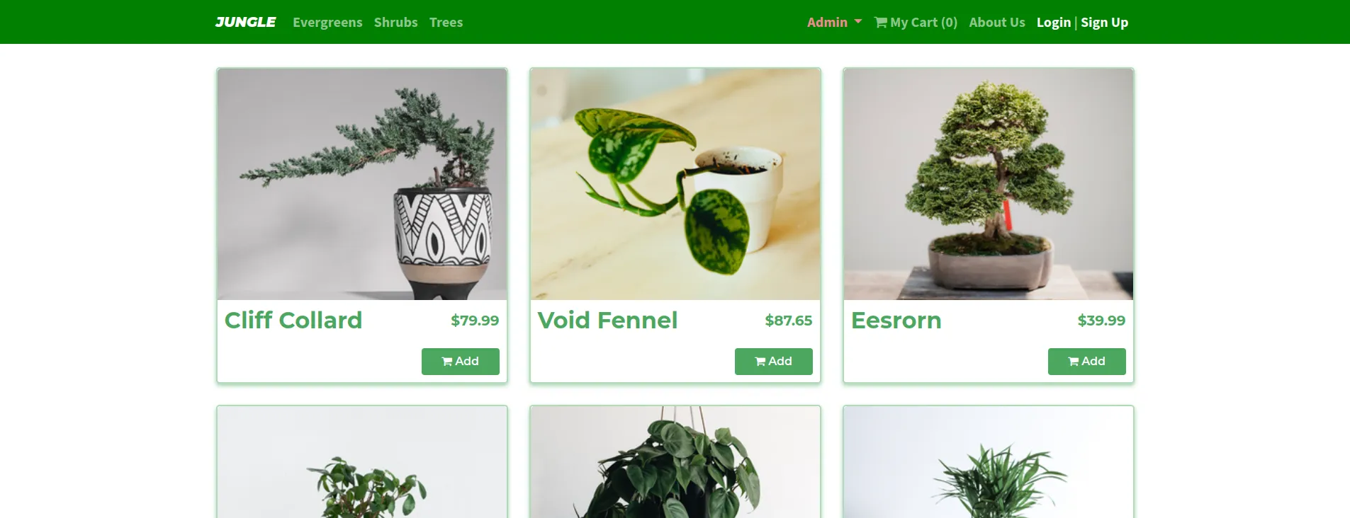 - Admin users are able to populate Jungle with any plant of their choosing, including photos, descriptions, price and quantities remaining.