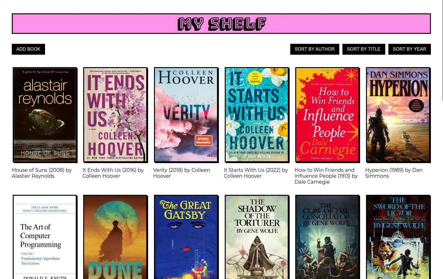 - Sort by author, title, or year to find your books ASAP.