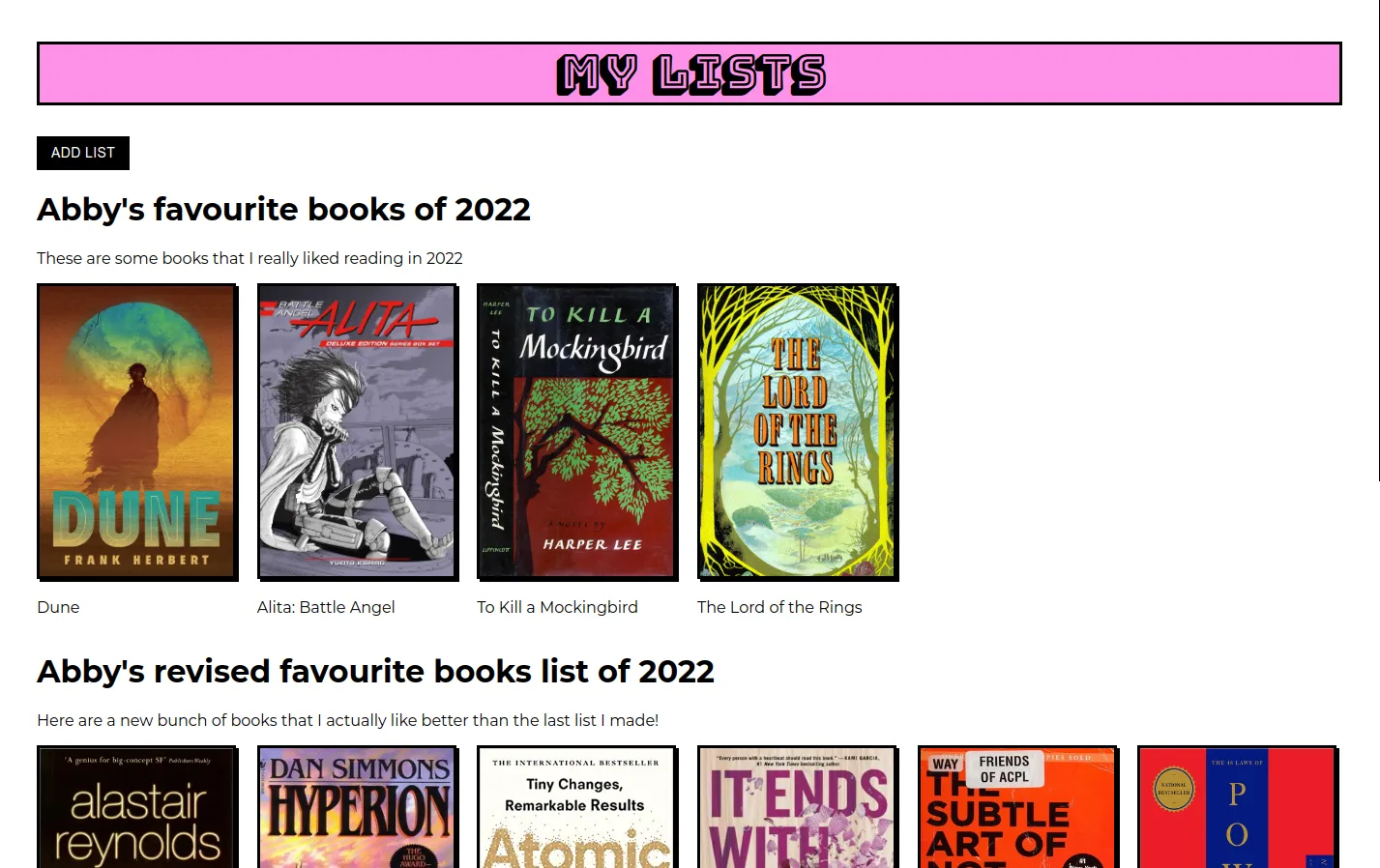 - Create dynamic lists of books that are visible by others on the application.