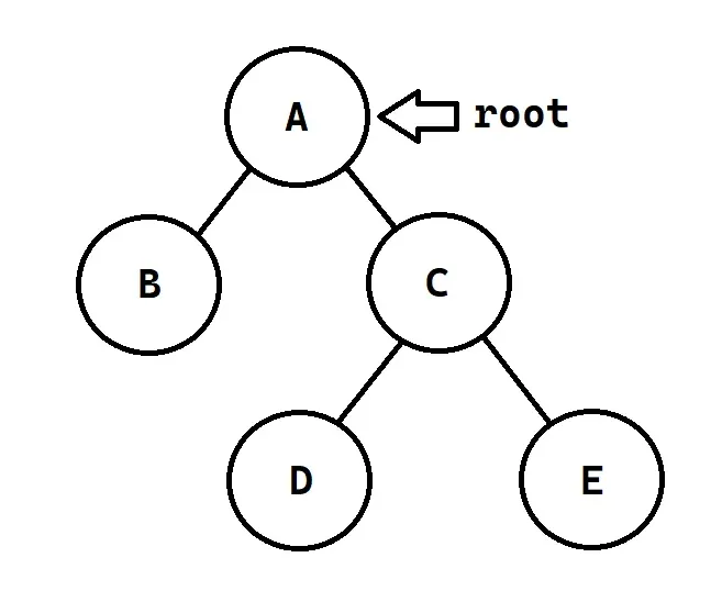 In the diagram we see below, the node A acts as the root, which in turn has two children, B and C. The siblings D and E share the same parent node, C. Nodes with no children (B, D, and E) are referred to as a leaf.
