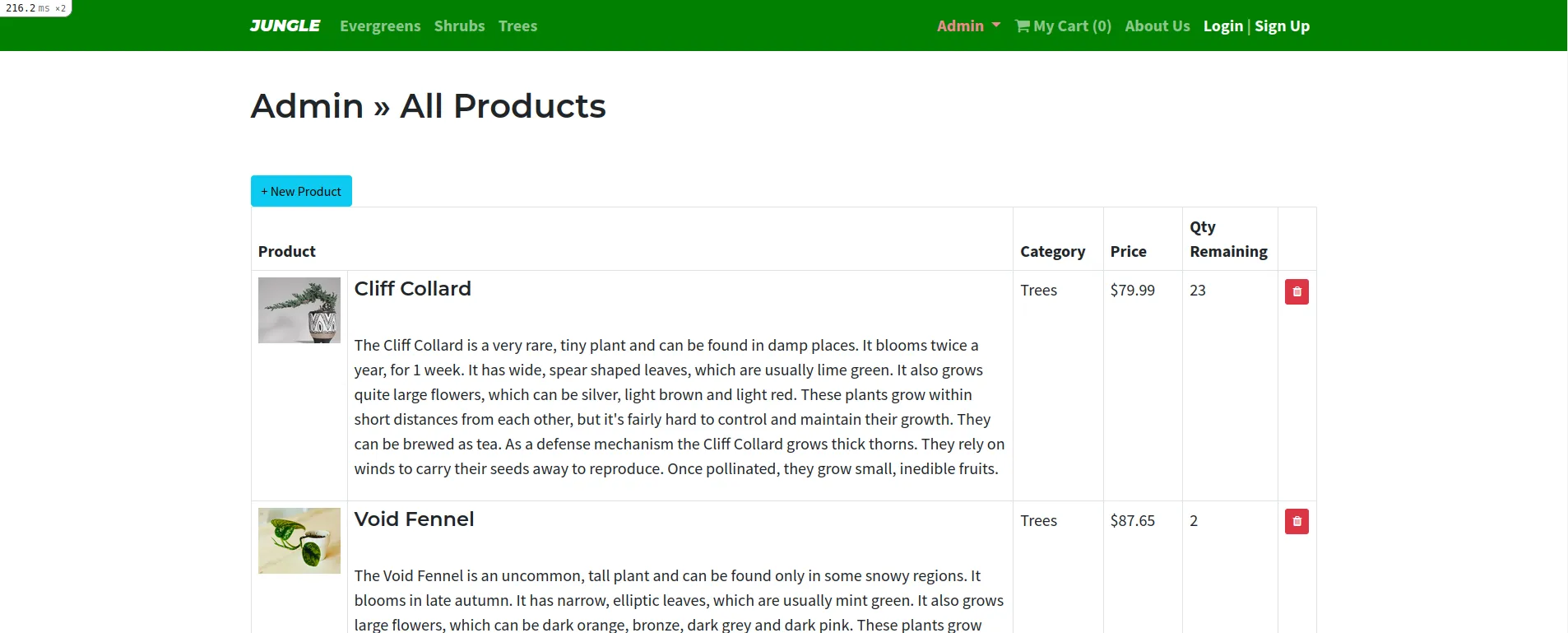 - Admin users are able to populate Jungle with any plant of their choosing, including photos, descriptions, price and quantities remaining.